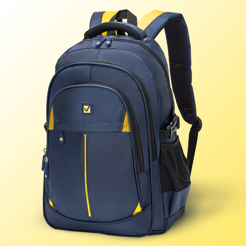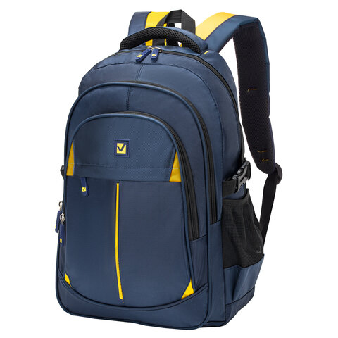 Рюкзак BRAUBERG TITANIUM универсальный, 3 отделения, синий, желтые вставки, 45х28х18 см, 270768