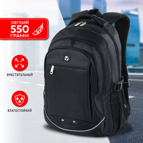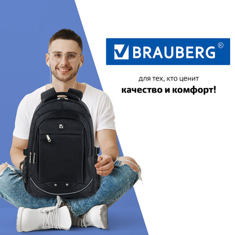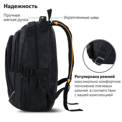 Рюкзак BRAUBERG HIGH SCHOOL универсальный, 3 отделения, "Карбон", черный, 46х31х18 см, 270758