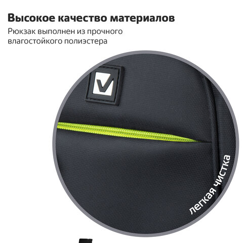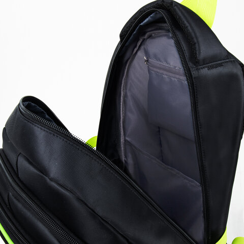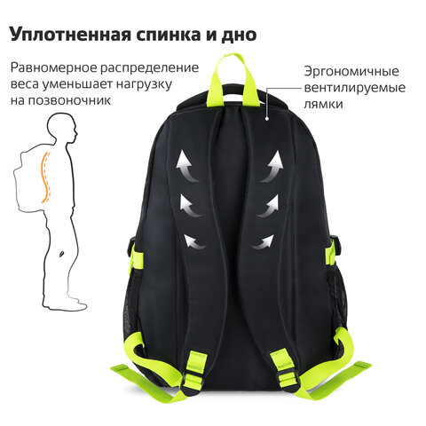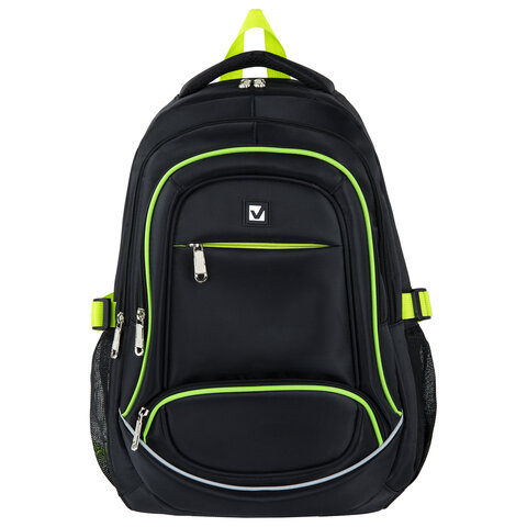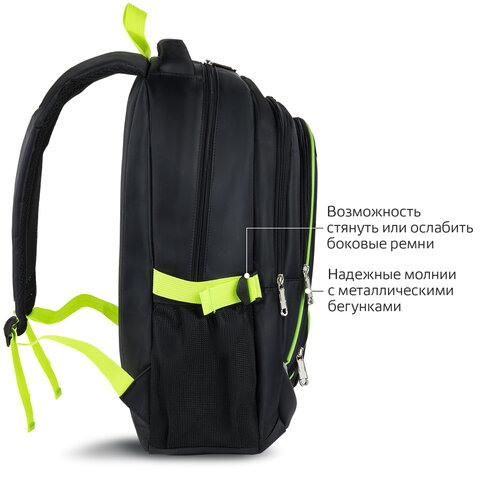 Рюкзак BRAUBERG HIGH SCHOOL универсальный, 3 отделения, "Акцент", черный/салатовый, 46х31х18 см, 270761