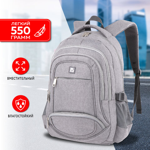 Рюкзак BRAUBERG HIGH SCHOOL универсальный, 3 отделения, "Туман", светло-серый, 46х31х18 см, 270762