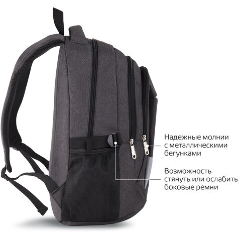 Рюкзак BRAUBERG HIGH SCHOOL универсальный, 3 отделения, "Осень 2", темно-серый, 46х31х18 см, 270759