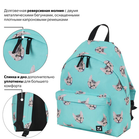 Рюкзак BRAUBERG СИТИ-ФОРМАТ универсальный, "Cats", голубой, 41х32х14 см, 229881