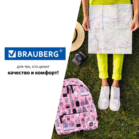 Рюкзак BRAUBERG СИТИ-ФОРМАТ универсальный, "Kaktusy", розовый, 41х32х14 см, 228859