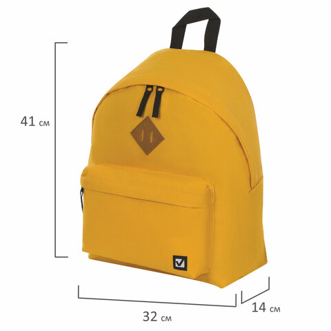 Рюкзак BRAUBERG СИТИ-ФОРМАТ один тон, универсальный, желтый, 41х32х14 см, 225378