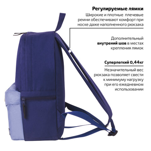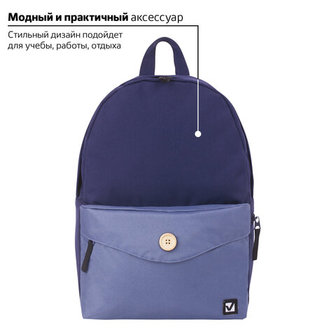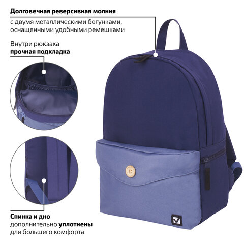 Рюкзак BRAUBERG SYDNEY универсальный, карман с пуговицей, сине-голубой, 38х27х12 см, 228838