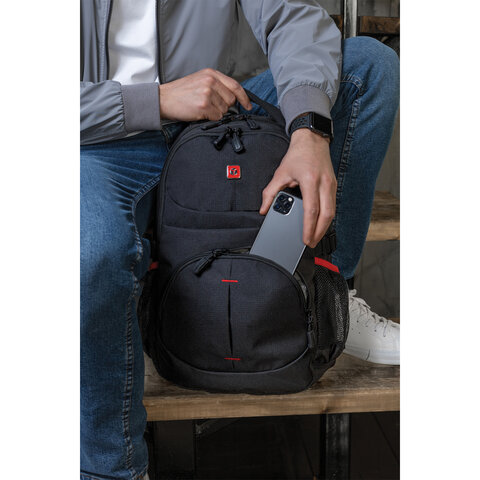 Рюкзак GERMANIUM "S-06" универсальный, уплотненная спинка, облегченный, черный, 46х32х15 см, 226953