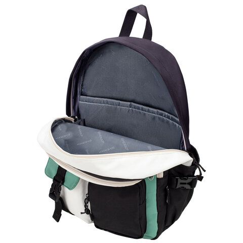 Рюкзак HEIKKI BLOCKS (ХЕЙКИ) универсальный, 2 отделения, черный/бирюзовый/бежевый, 44х32х17 см, 272562