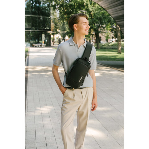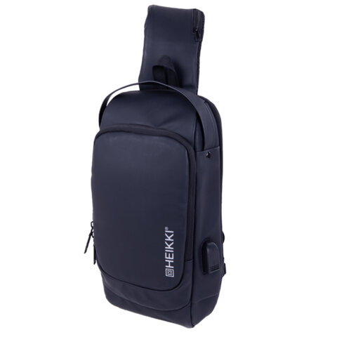 Рюкзак однолямочный HEIKKI FEATURE (ХЕЙКИ), кодовый замок, USB-порт, черный, 32x16x6 см, 273900