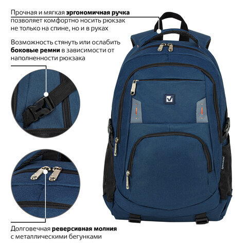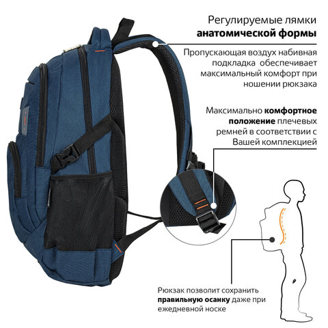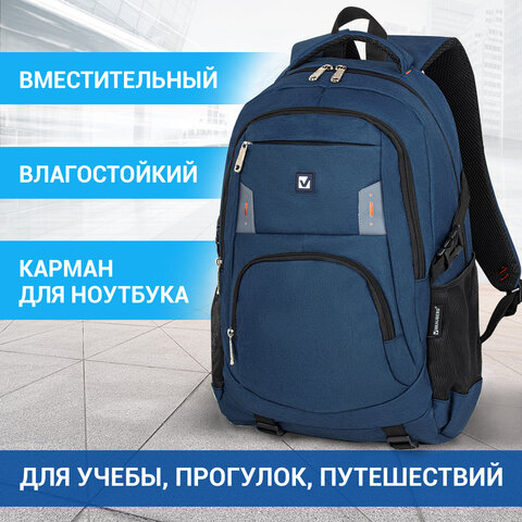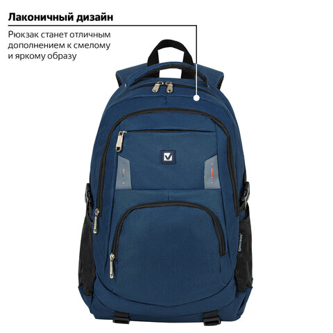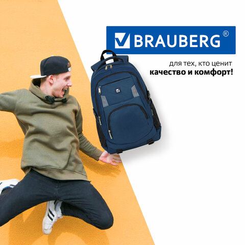 Рюкзак BRAUBERG DELTA универсальный, 2 отделения, с отделением для ноутбука, "Mercury", синий, 49х34х15 см, 226348