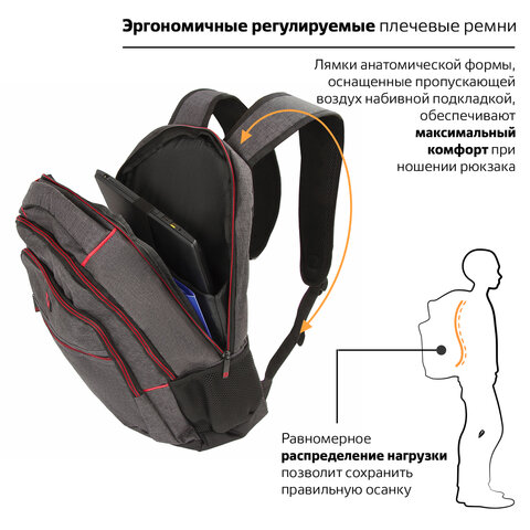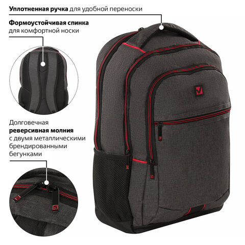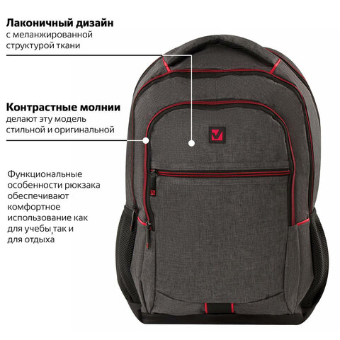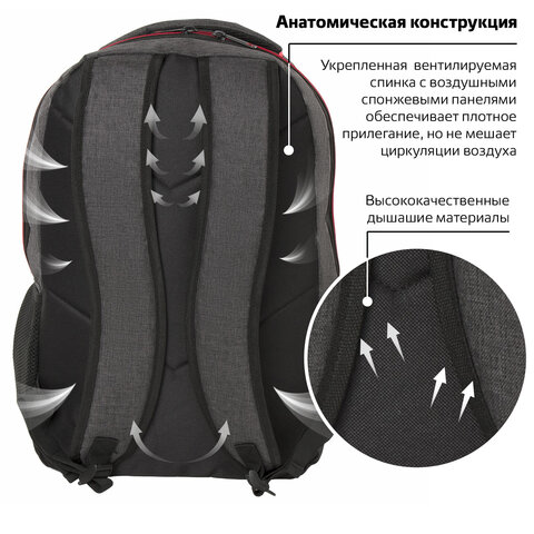 Рюкзак BRAUBERG URBAN универсальный, с отделением для ноутбука, "Boston", темно-серый, 47х30х14 см, 228867