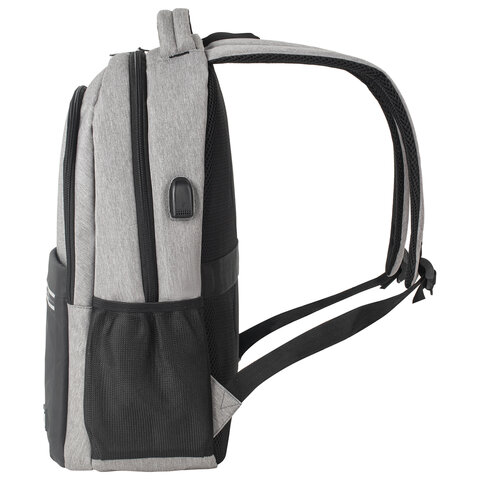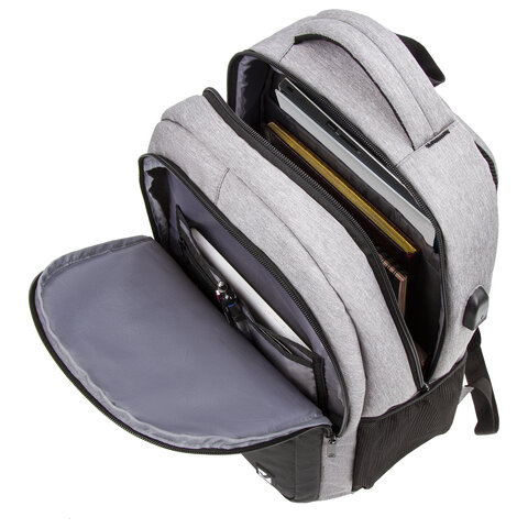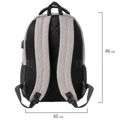 Рюкзак BRAUBERG URBAN универсальный, с отделением для ноутбука, USB-порт, Detroit, серый, 46х30х16 см, 229894