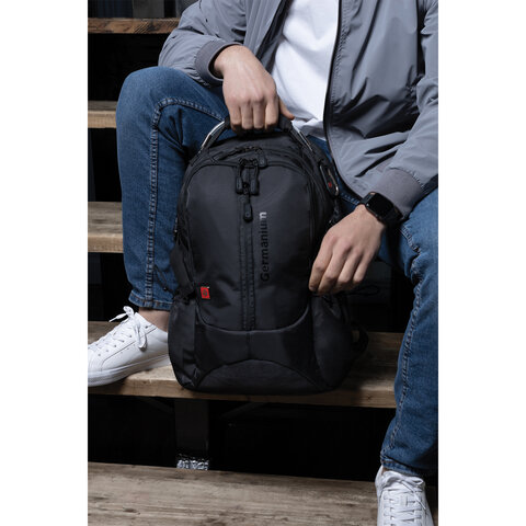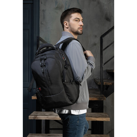 Рюкзак GERMANIUM "S-02" универсальный, с отделением для ноутбука, усиленная ручка, черный, 47х31х16 см, 226948