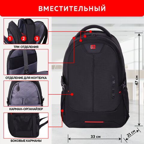 Рюкзак GERMANIUM UPGRADE универсальный, 3 отделения, отделение для ноутбука, USB-порт, "UP-2", черный, 47х33х21 см, 271666