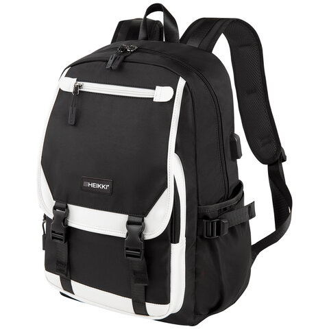 Рюкзак HEIKKI FUSION (ХЕЙКИ) универсальный, USB-порт, черный с белыми вставками, 45х31х15 см, 272578