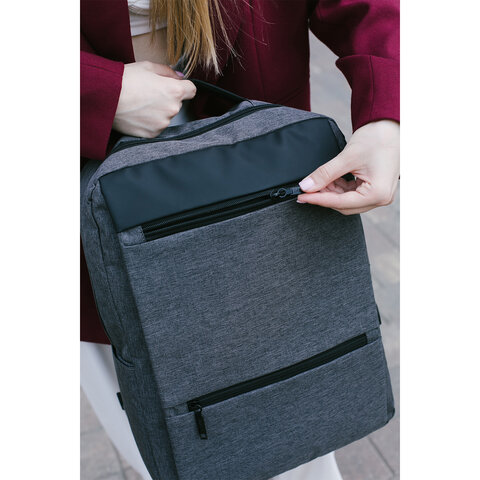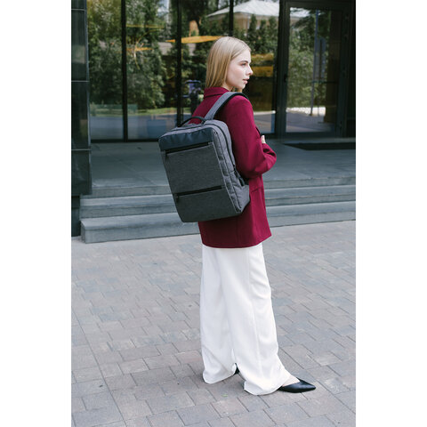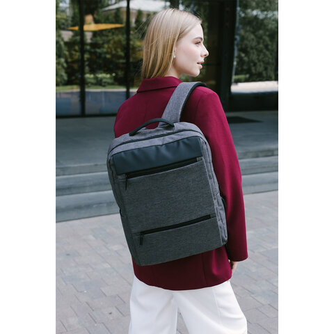 Рюкзак HEIKKI PANEL (ХЕЙКИ), отделение для ноутбука, USB-порт, серый, 44x30x13 см, 273903