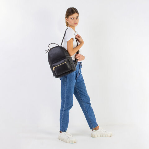 Трендовый черный рюкзак из качественной экокожи в стиле минимализм невероятно универсален и подходит для повседневной носки. Модный аксессуар дополнит любой образ, прекрасно сочетаясь с разными стилями в одежде - от спортивного до романтического.