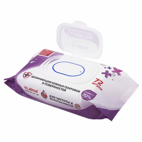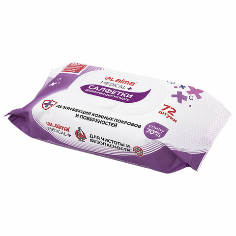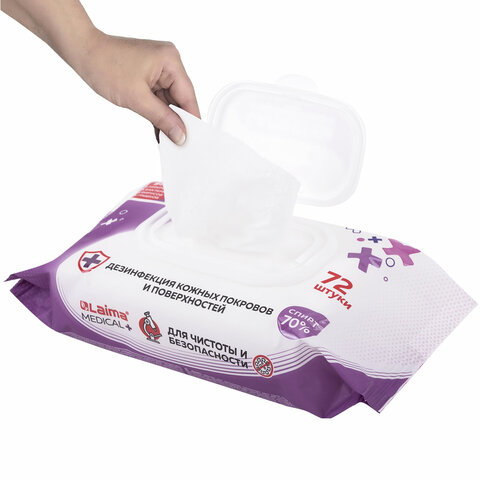 Дезинфицирующие салфетки спиртовые (70%), для рук и любых поверхностей, 72 шт., LAIMA MEDICAL, 608766
