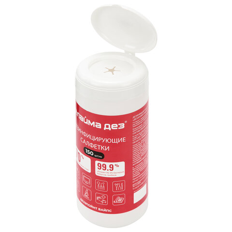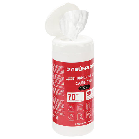 Дезинфицирующие салфетки спиртовые (70%) для рук и поверхностей 150 шт., ЛАЙМАДЕЗ, банка, 609592