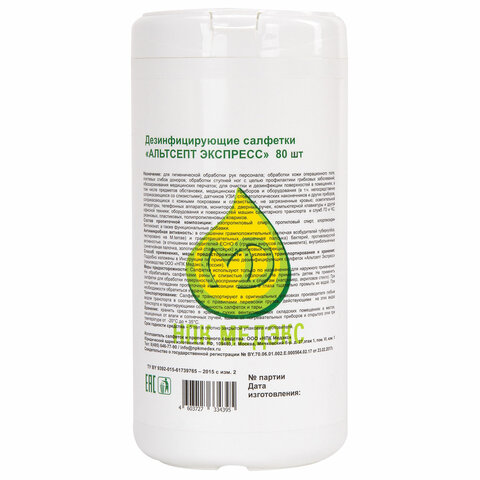 Дезинфицирующие салфетки влажные 80 шт., АЛЬТСЕПТ ЭКСПРЕСС, для обработки рук и поверхностей