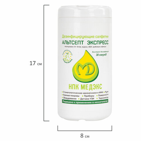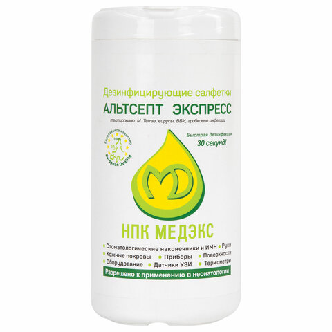 Салфетки дезинфицирующие АЛЬТСЕПТ ЭКСПРЕСС предназначены для обработки кожных покровов и малых по площади поверхностей.
