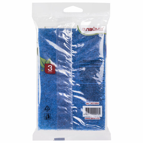 Губки-салфетки АБРАЗИВНЫЕ 130х90х5 мм, КОМПЛЕКТ 3 шт., от стойких загрязнений, LAIMA, К6013, 601564
