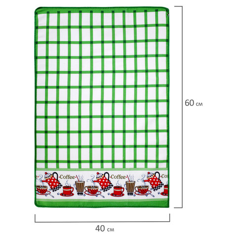 Салфетка из МИКРОФИБРЫ универсальная, 40х60 см, зеленая клетка, орнамент, 240 г/м2, BOOMHOUSE (БУМХАУС), 700878