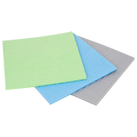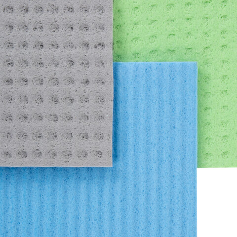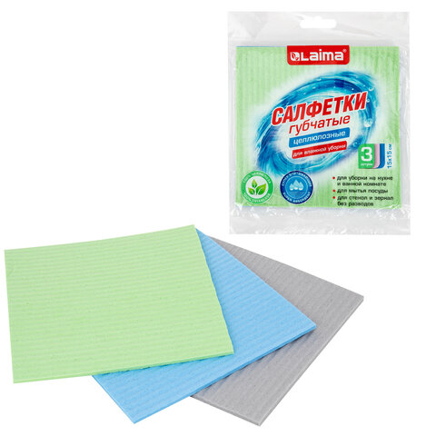 Салфетки губчатые для уборки кухни 15х15 см, ЦЕЛЛЮЛОЗНЫЕ, КОМПЛЕКТ 3 шт., цветные, LAIMA, 700262