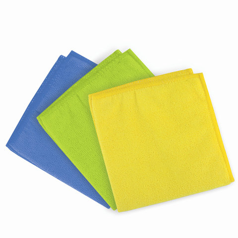 Салфетки из МИКРОФИБРЫ универсальные 25х25 см, КОМПЛЕКТ 3 шт., ассорти (синяя, зеленая, желтая), 200 г/м2, LAIMA, 601243