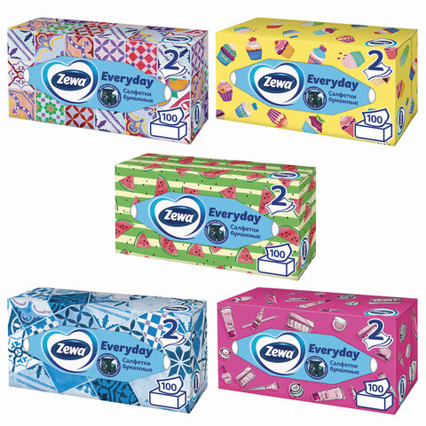 Салфетки косметические 100 штук в картонном боксе, 2-слойные, ZEWA Everyday, 24516, 6286