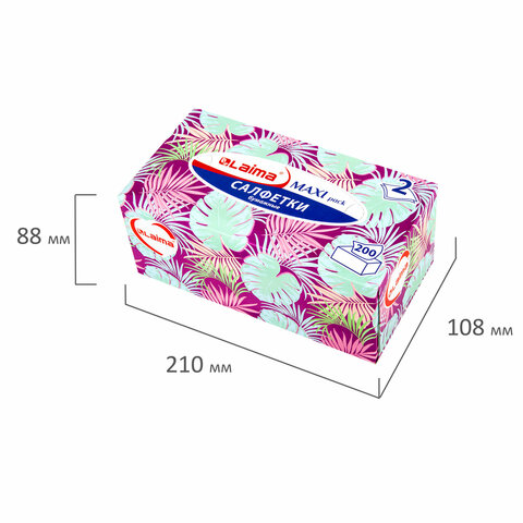 Салфетки в картонном боксе LAIMA практичны в применении. Их можно использовать не только дома, но и в офисе, на работе или взять с собой в дорогу. Предназначены для личной гигиены. В одной пачке 200 двухслойных салфеток белого цвета. Размер: 200 х 200 мм.