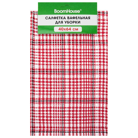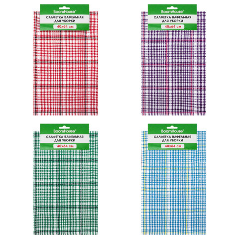 Салфетка вафельная универсальная, ХЛОПОК, 40х64 см, мелкая клетка, ассорти, BOOMHOUSE (БУМХАУС), 700885