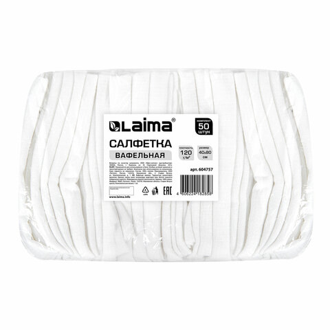 Салфетки ВАФЕЛЬНЫЕ отбеленные, 40х80 см, плотность 120 г/м2, КОМПЛЕКТ 50 шт., бюджет LAIMA, 604757