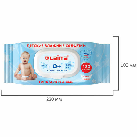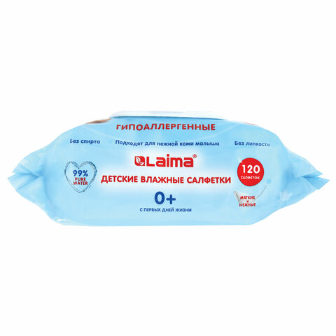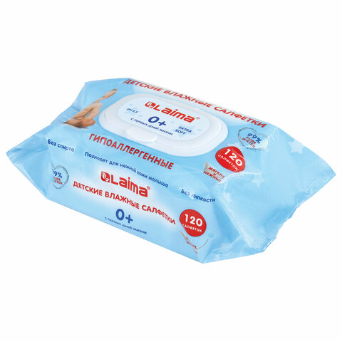 Салфетки влажные детские 120 шт., универсальные, 0+, с пластиковым клапаном, LAIMA Kids, 128079