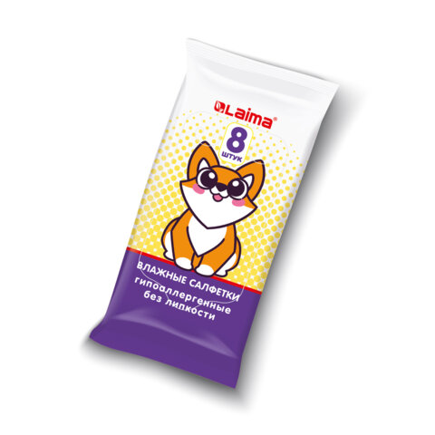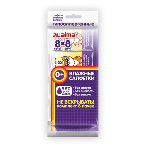 Салфетки влажные детские КОМПЛЕКТ 8 пачек по 8 шт., универсальные, 0+, "Карманный формат", LAIMA, 115228