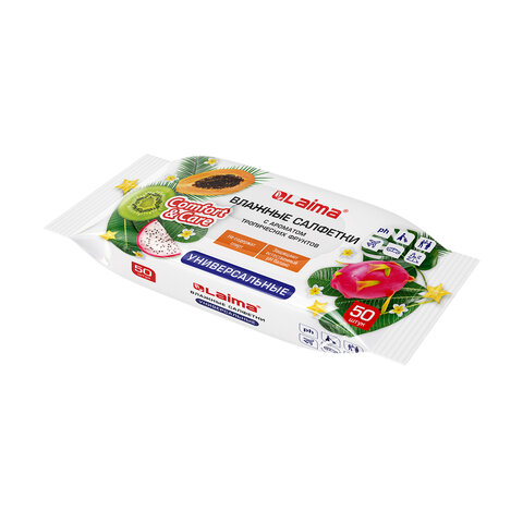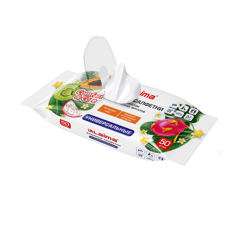 Салфетки влажные 50 шт., УНИВЕРСАЛЬНЫЕ, очищающие для всей семьи, тропические фрукты, LAIMA, 128076