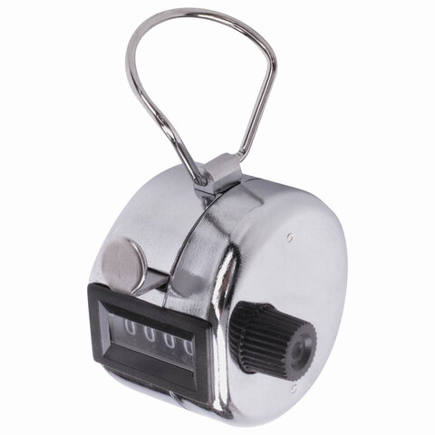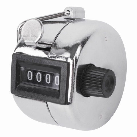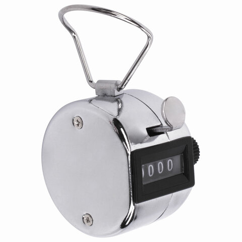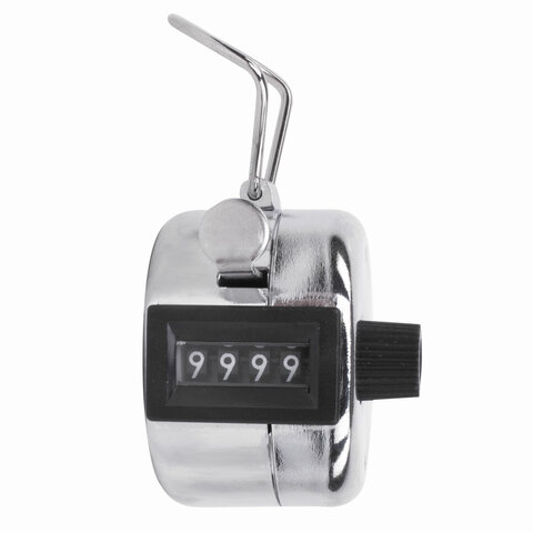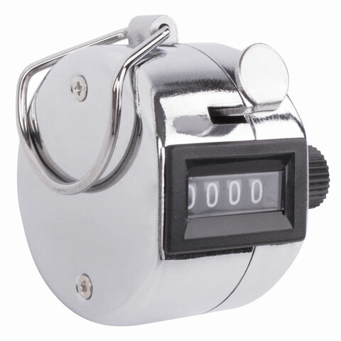 Счетчик механический (кликер), счет от 0 до 9999, корпус металлический, хром, BRAUBERG, 453995