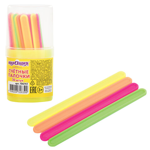 Счетные палочки ЮНЛАНДИЯ, 30 шт., ассорти, в пластиковом пенале, 106145