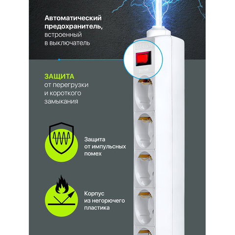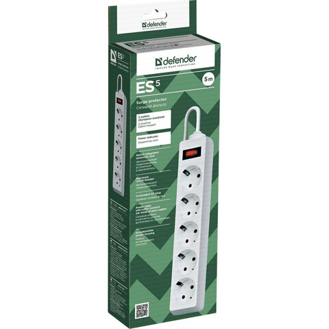 Сетевой фильтр DEFENDER ES, 5 розеток, 5 м, белый, 99483