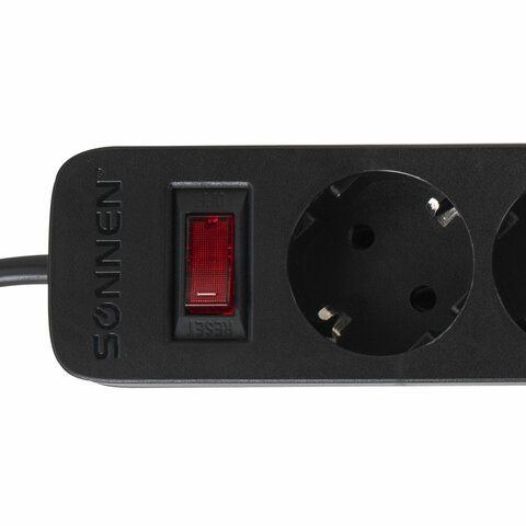 Сетевой фильтр SONNEN SPB-305, 5 розеток с заземлением, выключатель, 10 А, 3 м, черный, 513657