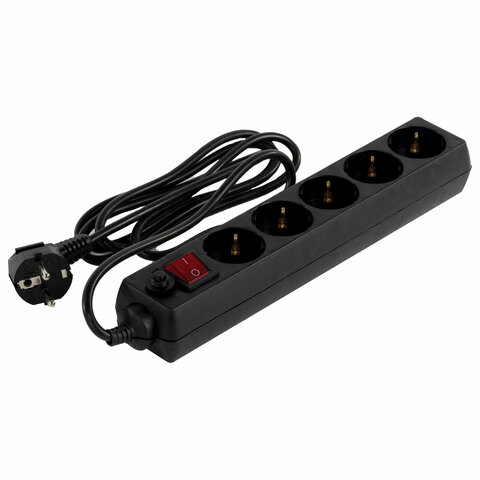 Сетевой фильтр SONNEN U-3518, 5 розеток, с заземлением, выключатель, 10 А, 1,8 м, черный, 513488