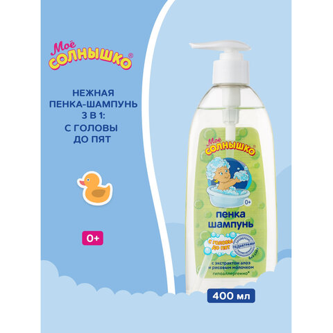 Пенка-шампунь для детей с головы до пят, с алоэ и рисовым молочком, 400 мл, МОЁ СОЛНЫШКО, 1706