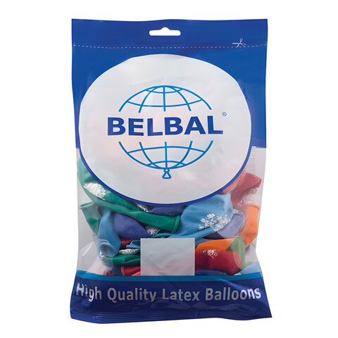 Шары воздушные 12" (30 см), комплект 50 шт., 12 цветов, 8 рисунков "С ДНЕМ РОЖДЕНИЯ", в пакете, 1103-0081