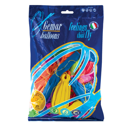 Шары воздушные 18" (45 см), КОМПЛЕКТ 25 шт., панч-болл (шар-игрушка с резинкой), 12 пастельных цветов, пакет, 1104-0000