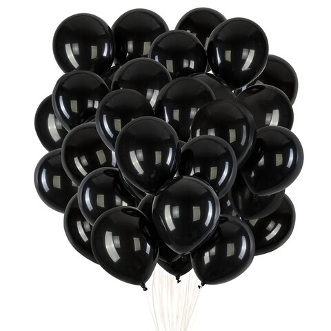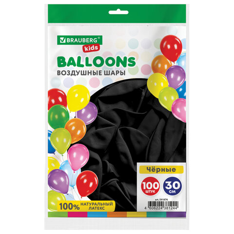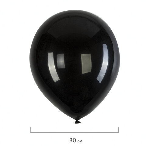 Шары воздушные 30 см, 100 штук, "ОДНОЦВЕТНЫЕ", чёрные, BRAUBERG KIDS, 591876
