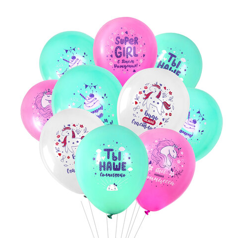Шары воздушные 30 см с рисунком "Для девочки", КОМПЛЕКТ 10 штук, ассорти, BRAUBERG KIDS, 591888