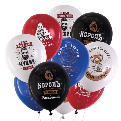Шары воздушные 30 см с рисунком "Для него", КОМПЛЕКТ 10 штук, ассорти, BRAUBERG, 591891