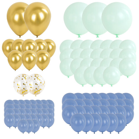 Шары воздушные НАБОР ДЛЯ ДЕКОРА "Нежность", 105 шаров, голубой/мятный/золото, BRAUBERG KIDS, 591896