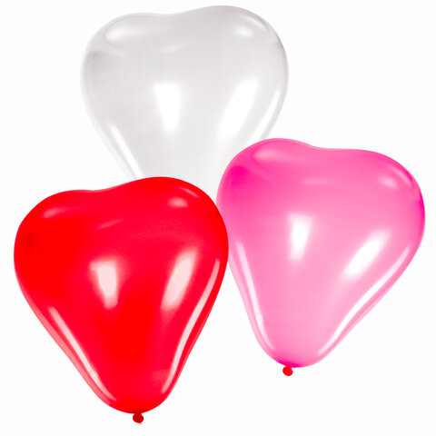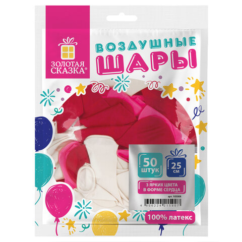 Шары воздушные в форме сердца ЗОЛОТАЯ СКАЗКА, 10" (25 см), КОМПЛЕКТ 50 штук, 3 цвета, пакет, 105008