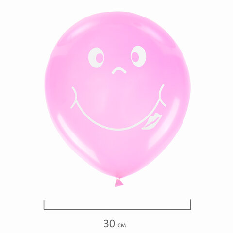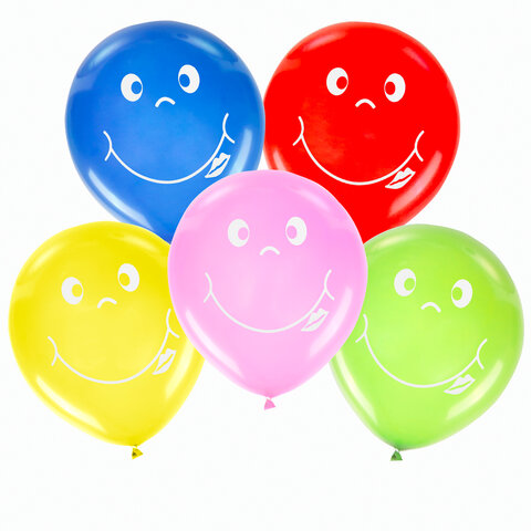 Шары воздушные ЗОЛОТАЯ СКАЗКА, 12" (30 см), КОМПЛЕКТ 5 штук, ассорти 5 цветов, с рисунком "Смайл", пакет, 105017