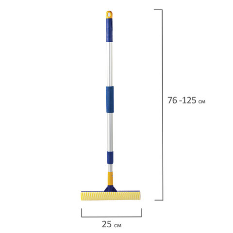 Окномойка LAIMA, алюминиевая телескопическая ручка 76-125 см, рабочая часть 25 см (стяжка, губка, ручка), для дома и офиса, 601493